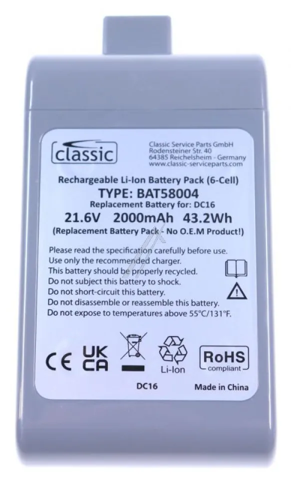 21,6V-2000mAh Akku für Dyson Staubsauger Classic