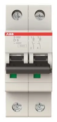 Schützen Sie Ihre Elektroinstallation zuverlässig – mit dem ABB S202-D6 Leitungsschutzschalter (D-Charakteristik, 2-polig, 6A, 6kA Schaltvermögen). Dieser Sicherungsautomat schützt Kabel und Leitungen effektiv vor Überlast und Kurzschluss und erfüllt höchste Ansprüche an Sicherheit und Flexibilität. Ideal für industrielle und gewerbliche Anwendungen sowie anspruchsvolle Elektroinstallationen.