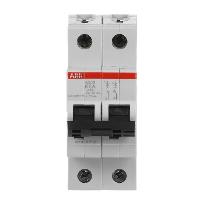 ABB Leitungsschutzschalter S202-K6, 2-polig 6A K-Charakteristik, 6kA