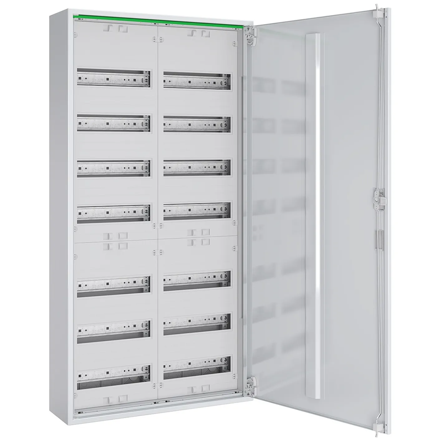 Dank 14 Reihen auf zwei Verteilerfeldern ist dieser Feldverteiler besonders vielseitig und zukunftssicher. Professionelle Installateure und anspruchsvolle Heimwerker profitieren von einfacher Montage, hervorragender Sicherheit und großzügigem Platzangebot für Reiheneinbaugeräte. Die neutrale weiße Optik (RAL 9016) sorgt dafür, dass der Verteiler in nahezu jede Umgebung passt und dabei stets einen sauberen, professionellen Eindruck hinterlässt.