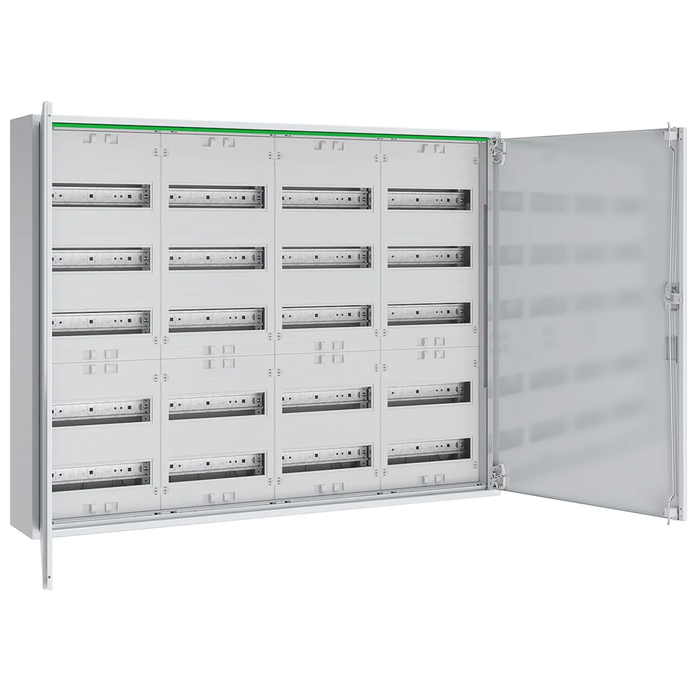 Mit seinem widerstandsfähigen Stahlgehäuse und IP44-Schutzart ist der Feldverteiler für die Aufputzmontage bestens gegen Staub und Spritzwasser geschützt. Die 20 Reihen und insgesamt 240 Teilungseinheiten ermöglichen eine äußerst flexible Montage verschiedenster Geräte, während seine weiße Oberfläche nach RAL 9016 für ein modernes, dezentes Erscheinungsbild sorgt.