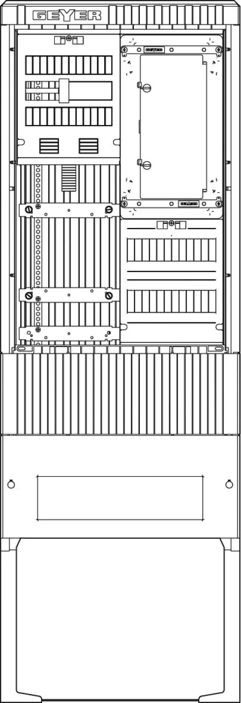 Mit nur einem Zählerplatz (4-polig) und einer integrierten Sammelschiene ist die Zähleranschlusssäule bestens für Haus- und Gewerbeanschlüsse geeignet. Die Montage gestaltet sich flexibel: Dank Aufputz- oder teilversenkter Installation und einer praktischen 3-Punkt-Befestigung lässt sich das Komplettsystem passgenau und schnell installieren. Großzügige Anschlussräume (NAR & AAR) mit zwei Feldern und sechs Verteilerreihen ermöglichen eine bequeme Verdrahtung und bieten ausreichend Platz für den Hausanschlusskasten.