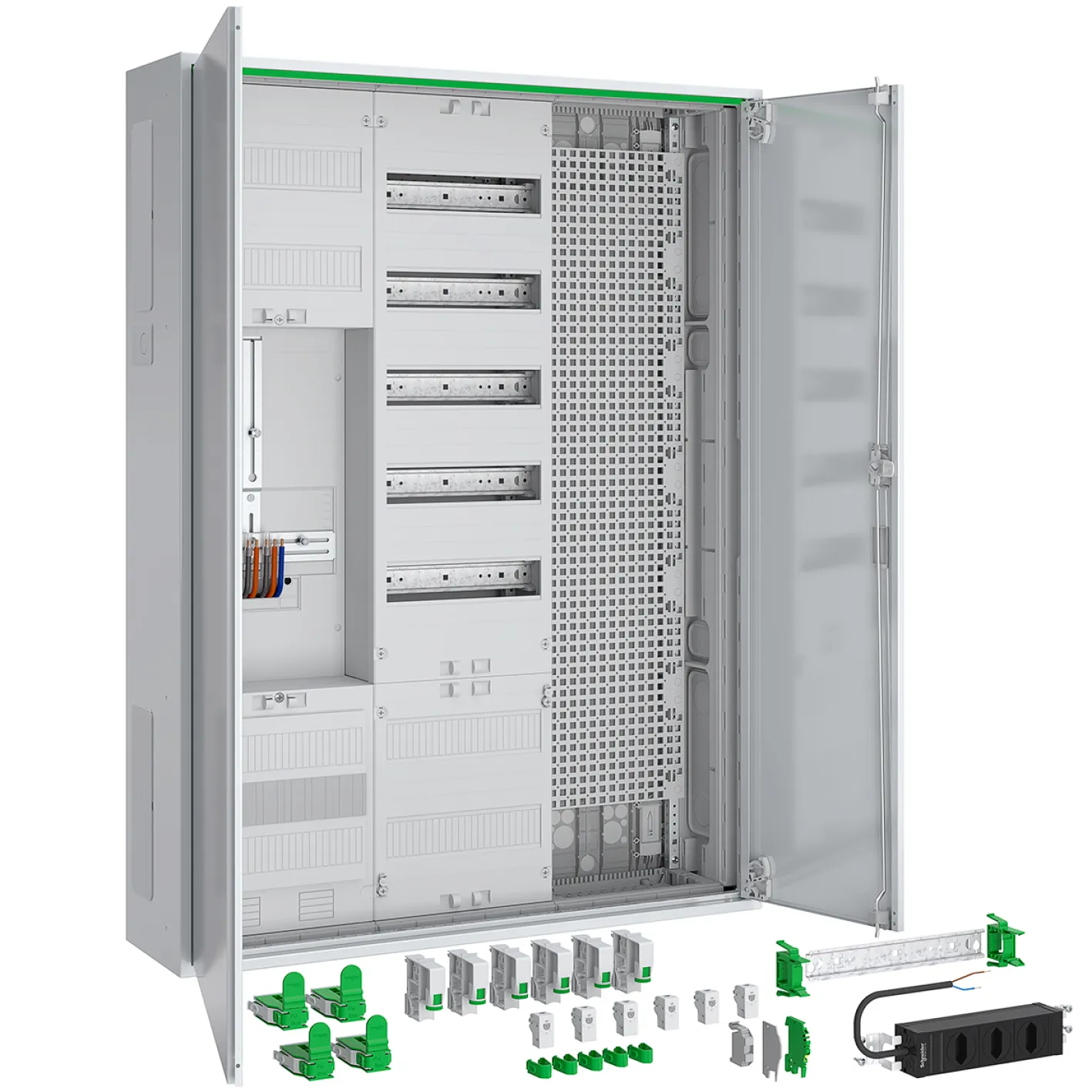 Mit dem ABN Komplettschrank setzen Sie auf elektrische Sicherheit, Übersichtlichkeit und digitale Vernetzung im Herzen Ihres Gebäudes. Die ausbaufähige Struktur und das umfangreiche Zubehörpaket machen ihn zur optimalen Wahl für anspruchsvolle Installationsprojekte.