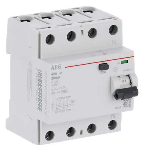 Der AEG FI-Schutzschalter 4x40A/0,03 FN440/A30 sorgt für maximale Sicherheit in Ihrer Elektroinstallation. Ob in Haushalt oder Gewerbe – dieser moderne Fehlerstromschutzschalter schützt zuverlässig Menschen und Anlagen vor gefährlichen Fehlerströmen und erhöht so den Brandschutz in Ihren Räumen.