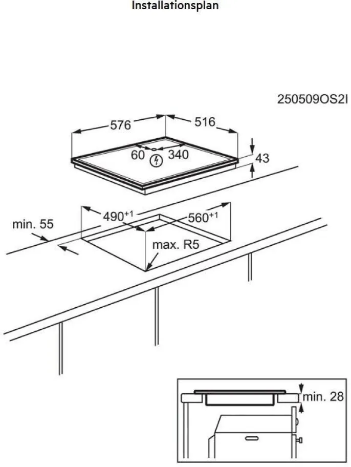| Einbaubreite Kochfeld | 56,0 cm |