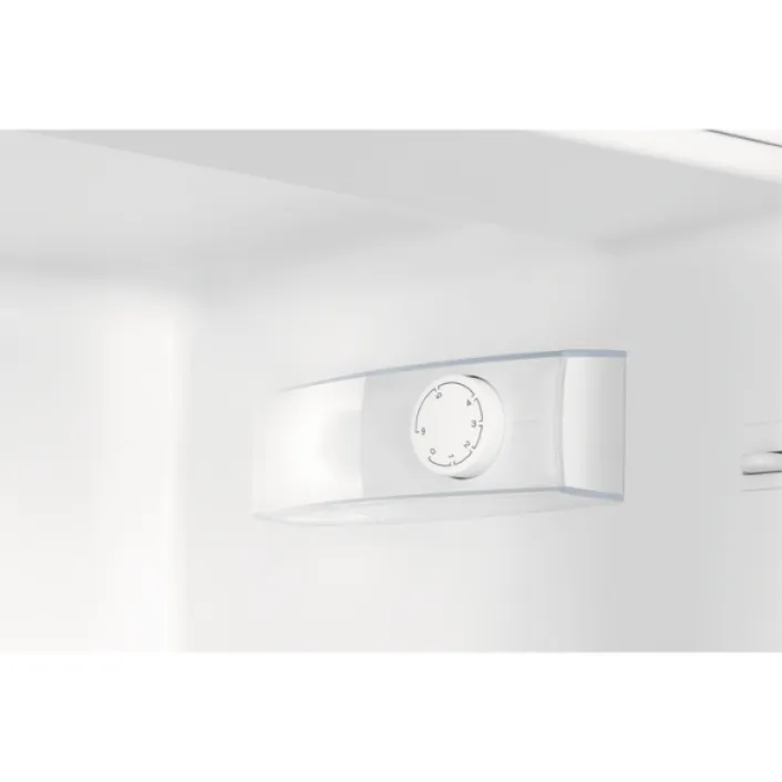 Im Innenraum sorgen vier höhenverstellbare Glasböden, eine große Gemüseschublade und eine praktische Eierablage für optimale Organisation. Die mechanische Temperaturregelung ist einfach zu bedienen und garantiert stets die richtige Kühltemperatur für Ihre Lebensmittel. Dank vollautomatischem Abtauen bleibt der Pflegeaufwand gering.