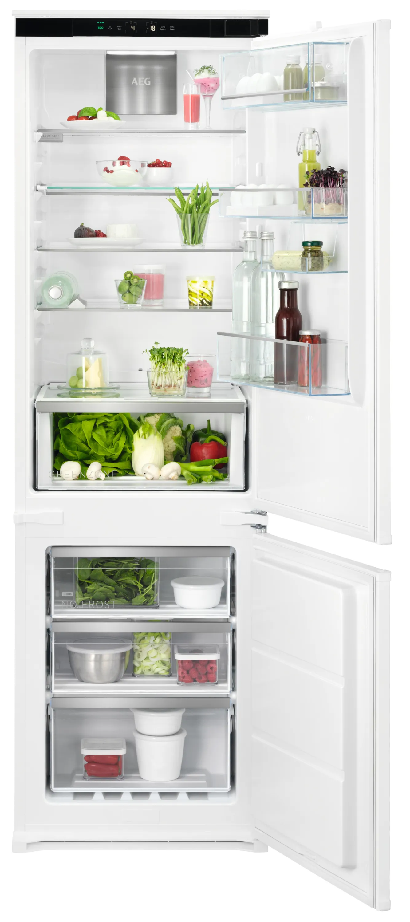 Die AEG TSC7G183DS Einbau-Kühl-Gefrierkombination mit moderner Schlepptür-Technik vereint innovative Frischhaltetechnologien, hohe Energieeffizienz und elegantes Design für Ihre Küche. Dank NoFrost- und TwinTech®-System bleiben Ihre Lebensmittel länger frisch – ganz ohne manuelles Abtauen.
