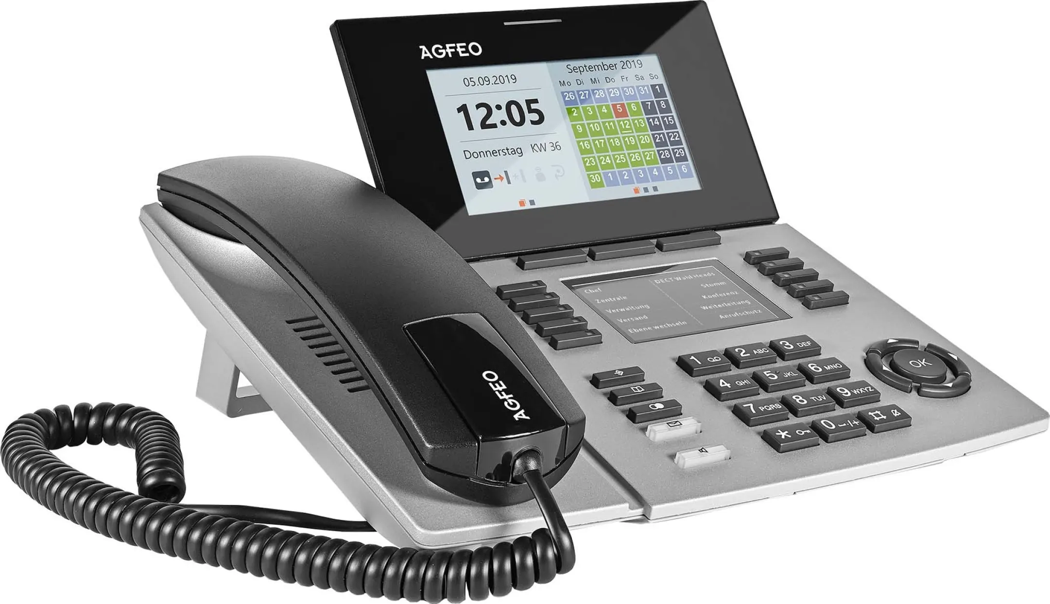 Dank Power over Ethernet (PoE) lässt sich das Telefon unkompliziert in Ihr LAN-Netzwerk integrieren – für eine aufgeräumte Optik ohne zusätzliche Kabel. Das schwenkbare, beleuchtete Farb-TFT-Bedienfeld überzeugt mit intuitiver Menüführung, individuell einstellbarem Darkmode und optimierter Widget-Darstellung. Annäherungssensoren aktivieren die Anzeige automatisch, während beleuchtete Tasten und Soft-Keys die Bedienung besonders komfortabel machen.