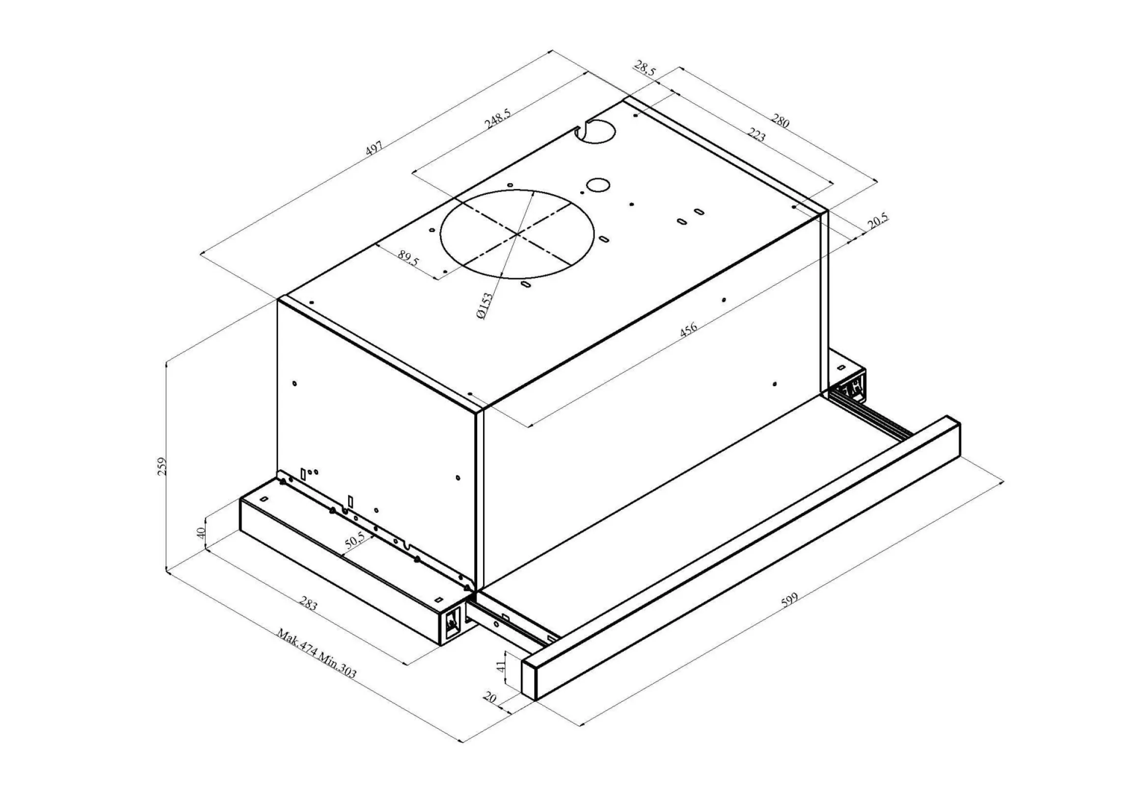 Flachschirmhaube,Teleskophaube, 60 cm
