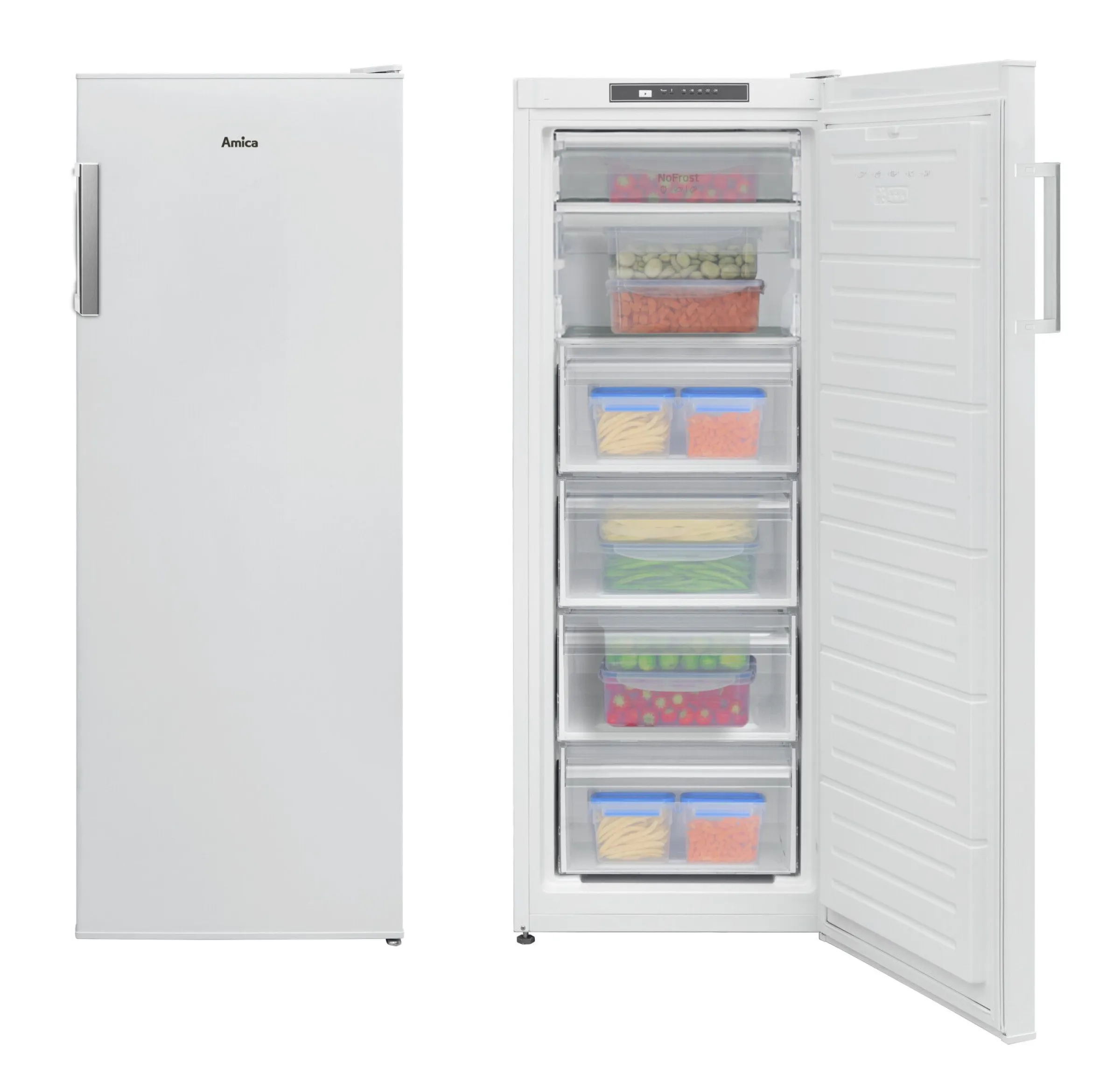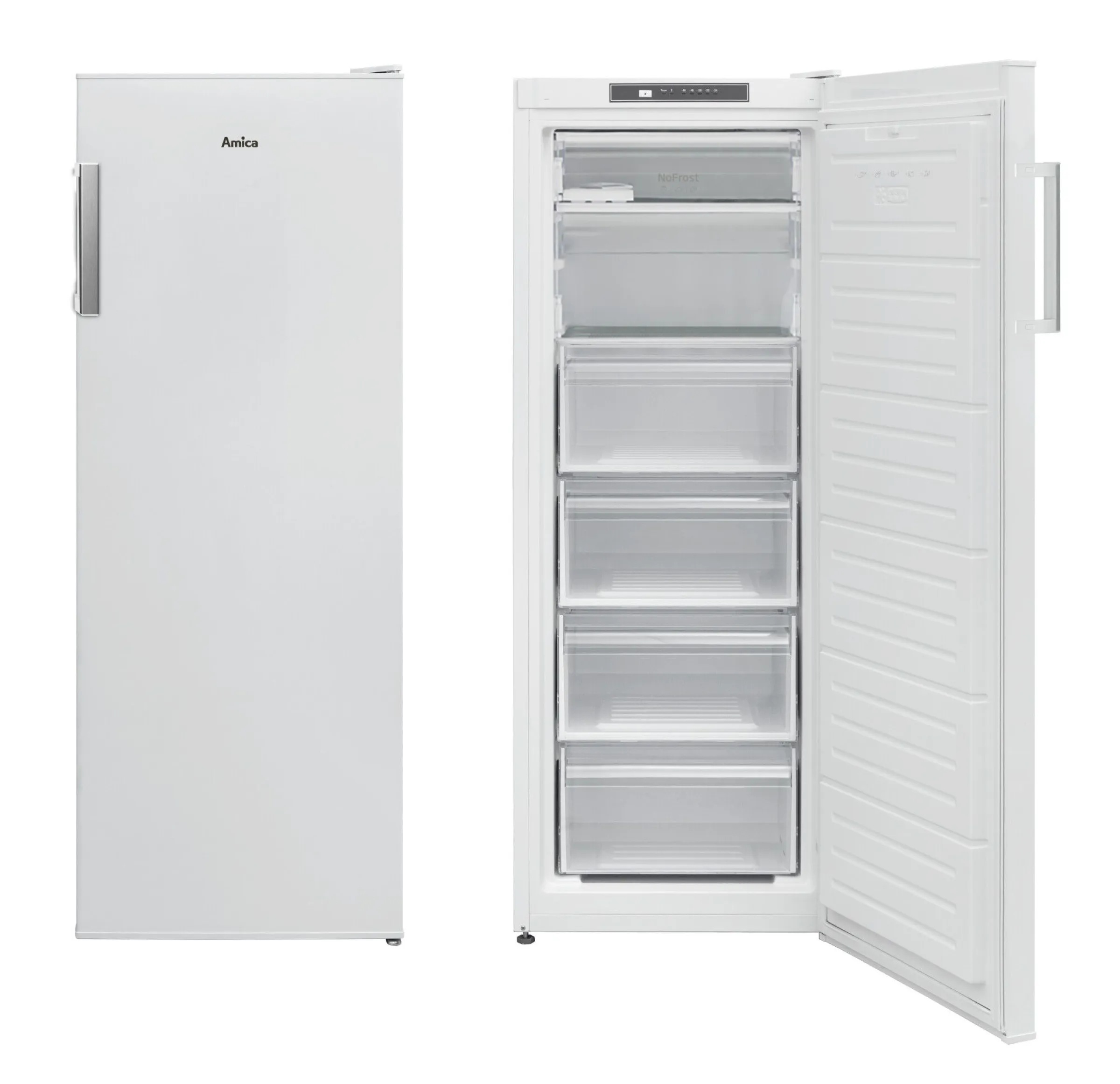 Der Amica GSN 324 160 W Gefrierschrank vereint moderne NoFrost-Technologie, großzügigen Stauraum und energieeffizienten Betrieb in einem kompakten Gerät. Mit einem Nutzinhalt von 174 Litern bietet dieser freistehende Gefrierschrank ausreichend Platz für Vorräte, Tiefkühlkost und mehr – ideal für Familien, WGs oder Singles.