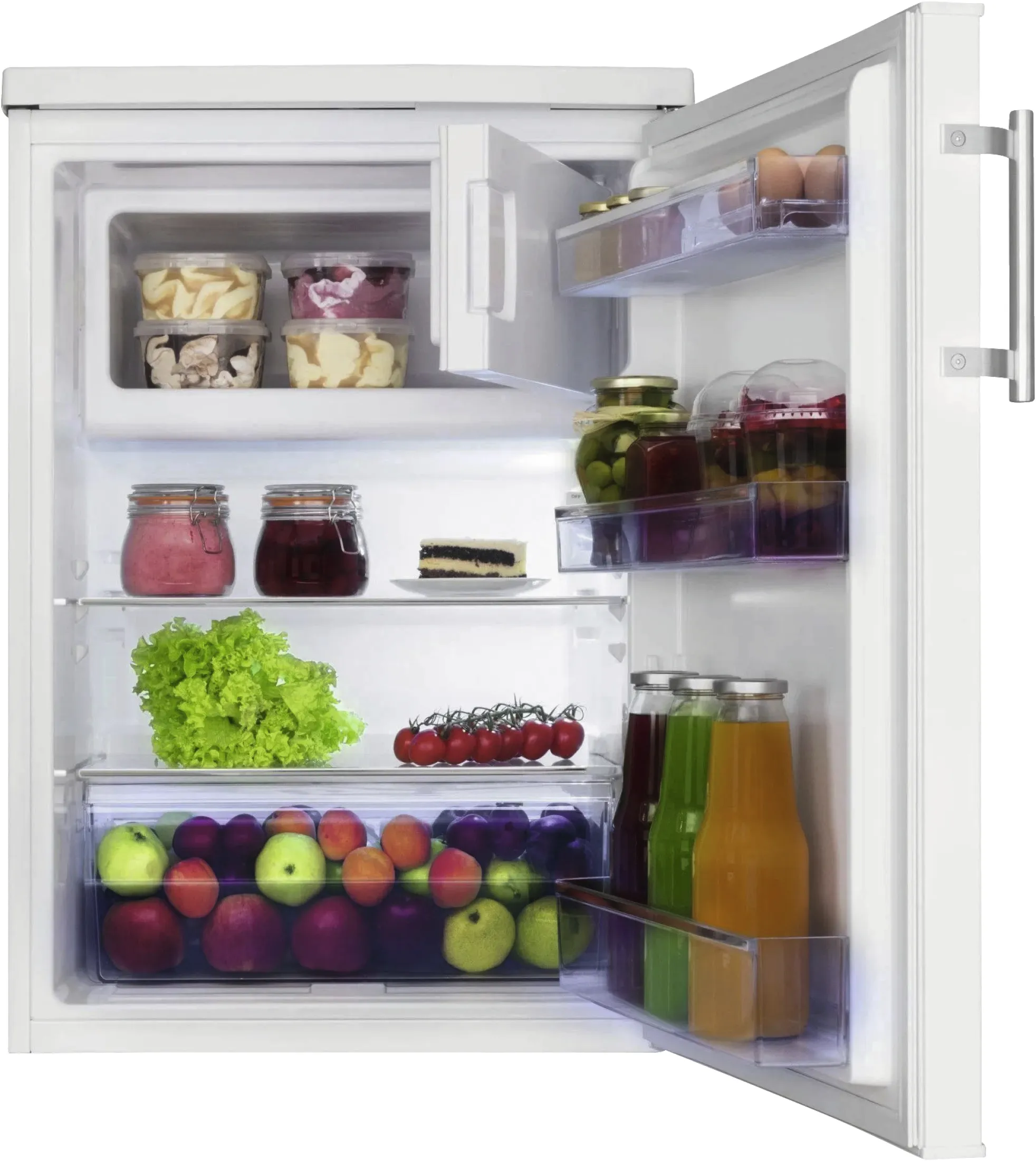 Der Amica KS 361 120 W Tischkühlschrank mit Gefrierfach ist die ideale Lösung für alle, die auf kleinem Raum nicht auf Komfort und Frische verzichten möchten. Mit einem Gesamtnutzinhalt von 136 Litern (117 l Kühlen, 19 l Gefrieren) bietet er ausreichend Platz für Lebensmittel, Getränke und Tiefkühlprodukte – perfekt für Single-Haushalte, kleine Familien, Büros oder als Zweitgerät.