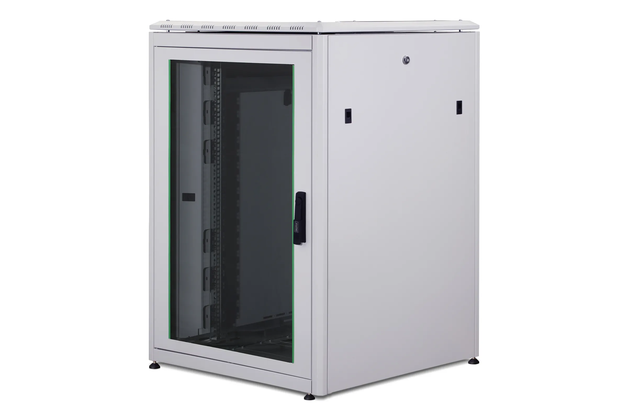 Mit dem DIGITUS Netzwerkschrank profitieren Sie von zuverlässigem Schutz und optimaler Organisation Ihrer IT-Komponenten. Die abschließbare Glastür bietet Sicherheit und ermöglicht gleichzeitig den schnellen Überblick über Ihre Technik. Dank durchdachtem Kabelmanagement und flexibler Profilschienen lassen sich Installationen und Wartungen effizient durchführen – perfekt für wachsende IT-Umgebungen.