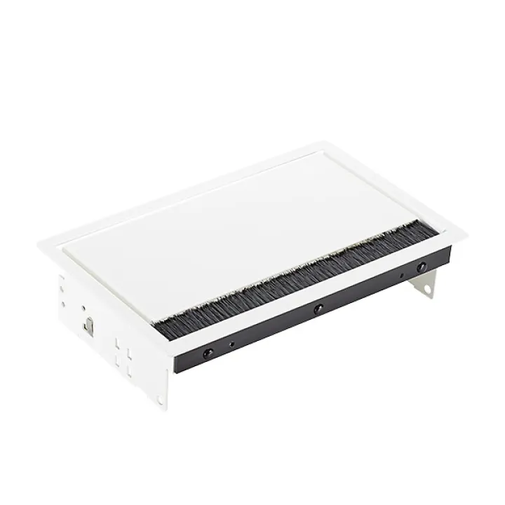 Die durchdachte Kabelführung und der bündige Einbau (Eckenradius R5) erhalten die klare Linienführung Ihres Tisches. Das schlichte Weiß passt zu jedem Interieur und unterstützt moderne Arbeitswelten.