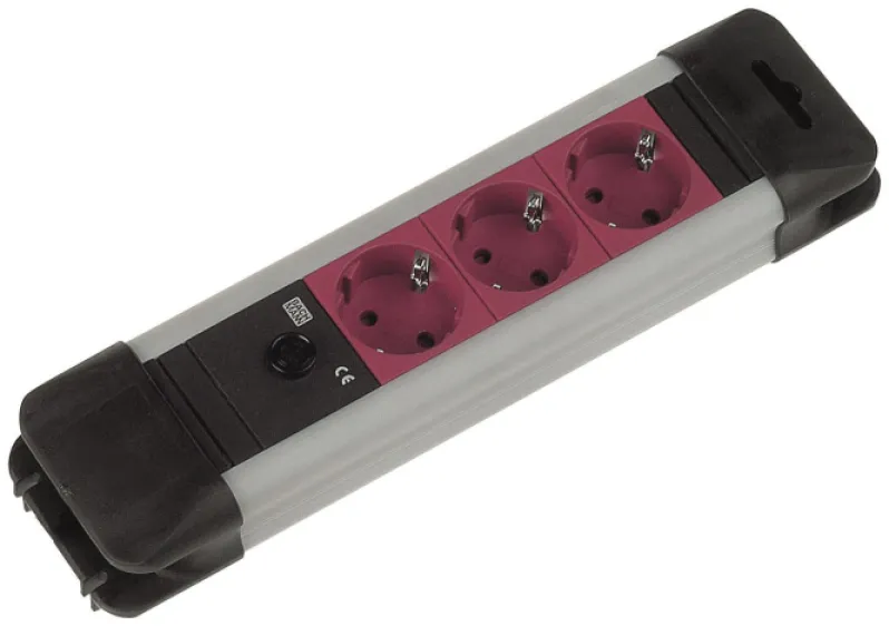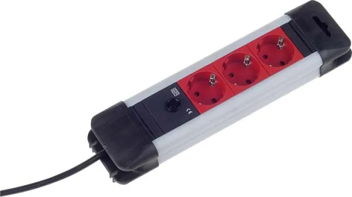Bachmann 3-fach Steckdosenleiste, Schuko 3x rot, C14 Kaltgerätestecker
