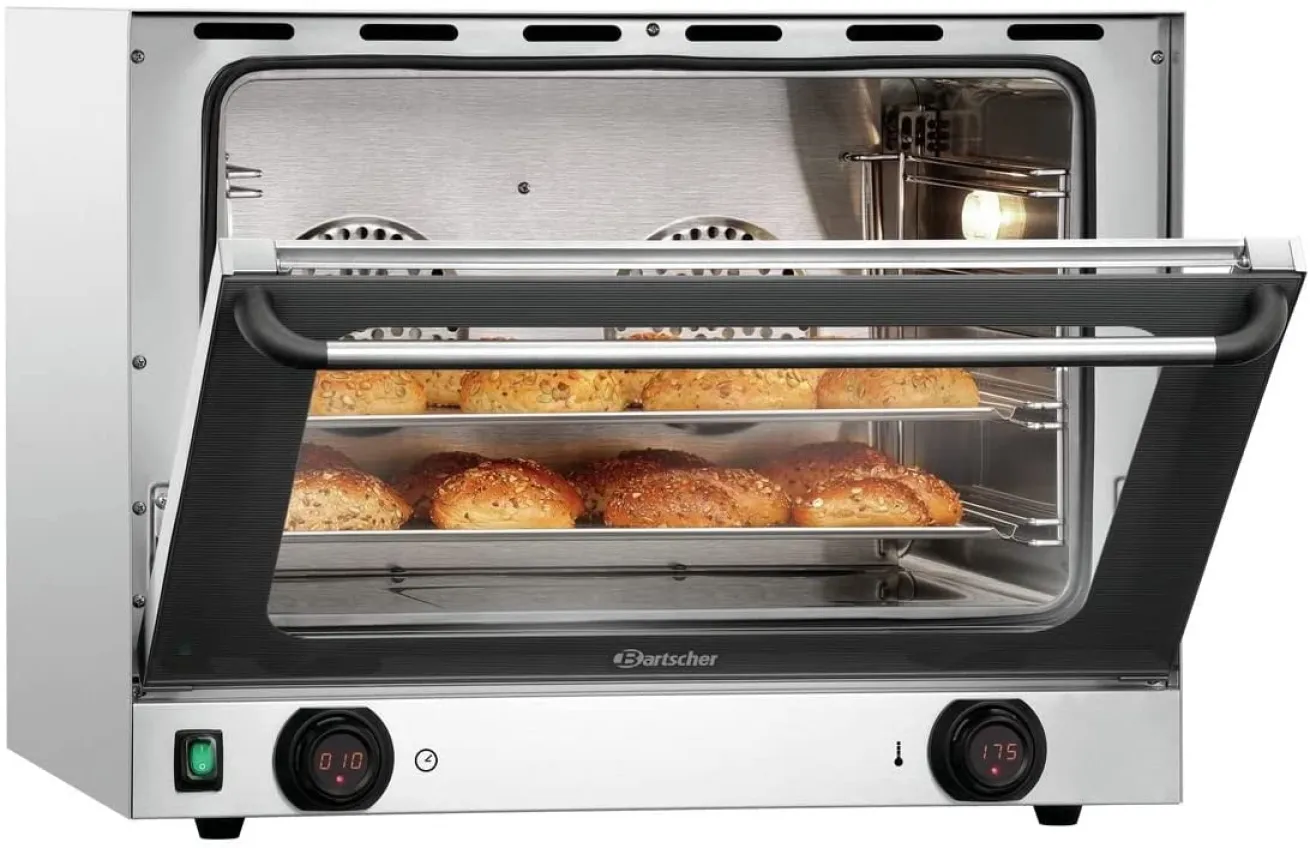 Der Bartscher Heißluftofen AT211-MDI ist die ideale Lösung für Großküchen, Restaurants, Cateringbetriebe oder ambitionierte Hobbyköche. Ausgestattet mit modernster Umlufttechnik, vier flexiblen Einschüben im 1/1 GN-Format und einer robusten Edelstahl-Bauweise, garantiert dieser Gastro-Ofen gleichmäßige Back- und Garergebnisse – ob bei Aufläufen, Gebäck oder Braten.