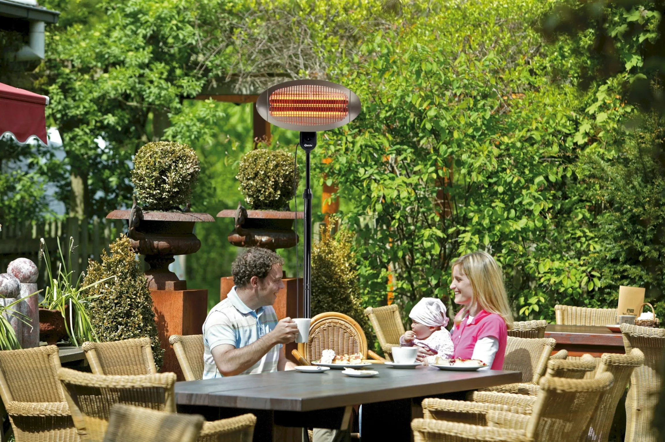 Mit dem Bartscher Terrassenheizer 2000D verwandeln Sie Ihre Terrasse, Balkon oder den Outdoor-Bereich der Gastronomie in eine behagliche Wohlfühloase. Dank moderner Quarz-Infrarottechnik wird die Wärme gezielt dahin geleitet, wo sie benötigt wird – Ihre Gäste oder Familie spüren die behagliche Strahlungswärme direkt auf der Haut, ohne unangenehme Zugluft.