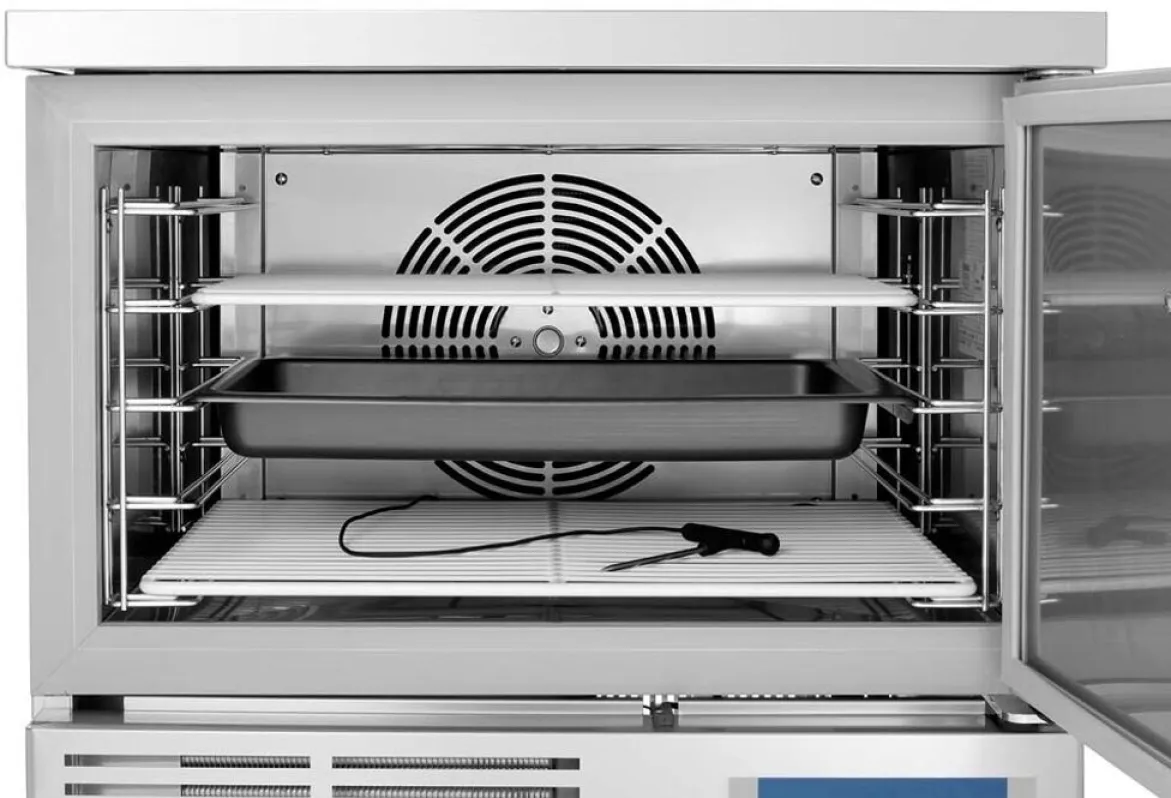 Dank modernster Technologie bewahren Sie Aroma, Textur und Nährstoffe Ihrer Speisen bestmöglich und erfüllen anspruchsvolle HACCP-Richtlinien. Die exakte Überwachung durch den Kerntemperaturfühler gibt Ihnen jederzeit Sicherheit, vor allem bei sensiblen Waren wie Fleisch, Fisch, Backwaren oder Desserts. Die platzsparende Bauweise lässt sich nahtlos in Ihr bestehendes Küchensystem integrieren.