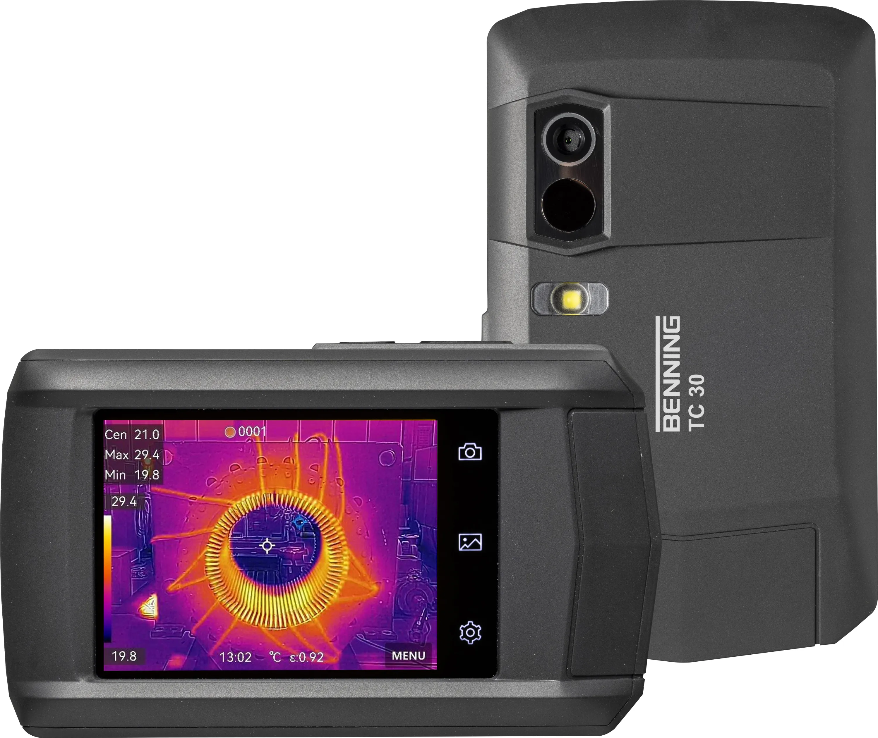 Die BENNING TC 30 Wärmebildkamera ist Ihr professionelles Werkzeug zur schnellen und präzisen Erkennung von Temperaturdifferenzen in Industrie, Handwerk und Gebäudethermografie. Mit einer hohen thermischen Empfindlichkeit von <0,04 °C und intuitiver Bedienung liefert sie gestochen scharfe Wärmebilder und erleichtert die Analyse von Anlagen, Elektronik oder Gebäuden.