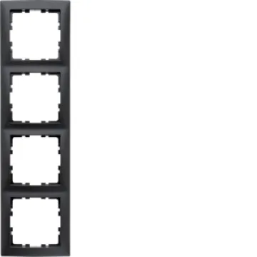 Gestalten Sie Ihre Elektroinstallation modern und flexibel: Der Berker Rahmen 4fach S.1 in eleganter anthrazit matter Ausführung sorgt für eine stilvolle Integration von Schaltern und Steckdosen in Wohn- und Geschäftsräumen. Dank variabler Montageoptionen – horizontal wie vertikal – passt sich der Rahmen verschiedenen Raumkonzepten und Umgebungen optimal an.