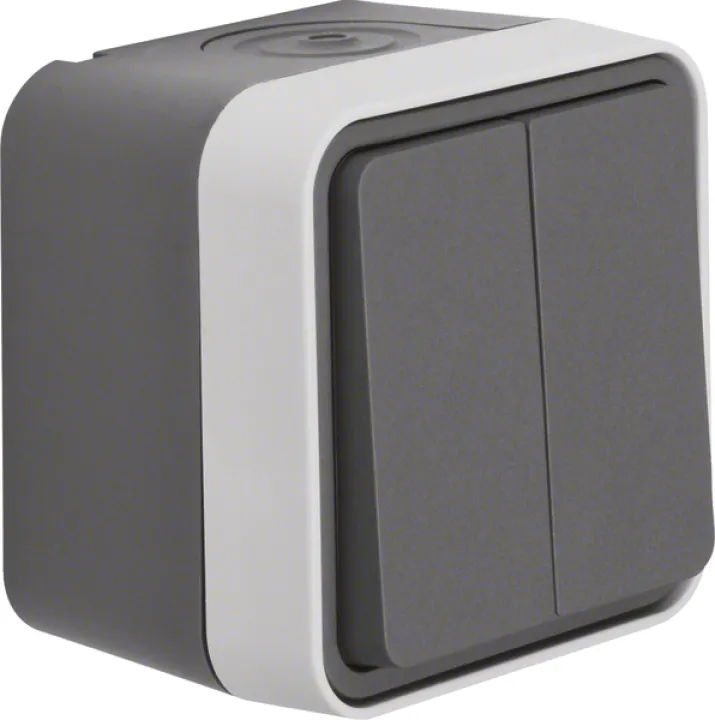 Berker Serienschalter Aufputz 30753505 W.1 | 2-fach | IP55 strahlwassergeschützt | Steckklemmen | Kunststoff | grau matt