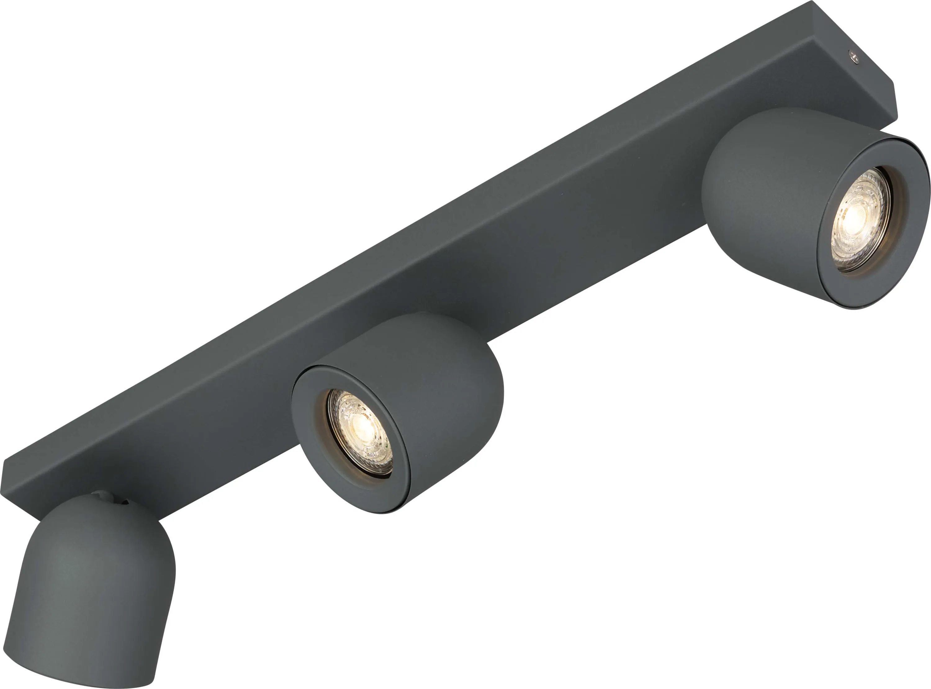 Das dezente, strukturierte Gehäuse in Grau macht den Deckenstrahler zu einem echten Blickfang in Wohnräumen, Fluren, Küchen oder Büros. Die drei Spots sind dreh- und schwenkbar, sodass Sie das Licht gezielt ausrichten und besondere Bereiche oder Objekte optimal in Szene setzen können. Ob als Hauptlichtquelle oder zur Akzentbeleuchtung – der Strahler passt sich Ihren Bedürfnissen an.