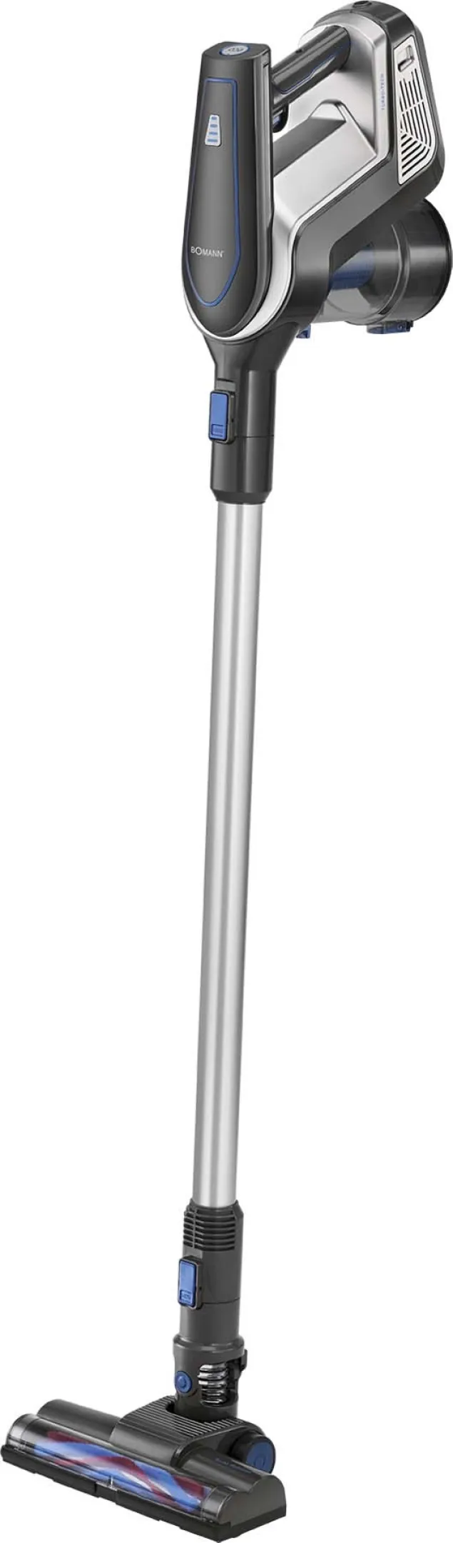 Akku-Stielsauger, abnehmbarer Handsauger, HEPA-Filter integriert, bis zu 20 Minuten Betriebszeit, Li-Ionen-Akkusystem, 18,5 Volt, Elektrobürste, Fugendüse extra lang, Mini-Turbodüse/-bürste, Wandhalterung Inkl. extra langer Fugendüse (25 cm), inkl. drehbare Bürstendüse (90°),