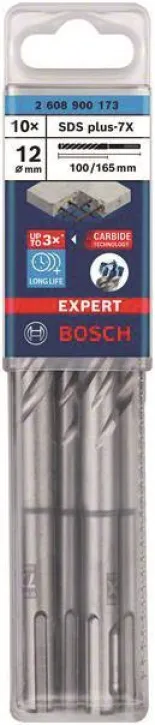 Bosch Hammerbohrer-Set SDS-plus-7X 12 mm x 100 x 165 mm, 10-tlg., Hartmetall