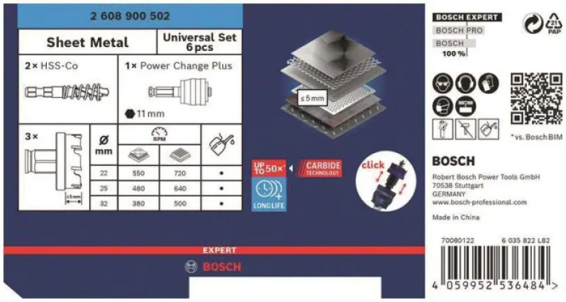 Verabschieden Sie sich von stumpfen, abgenutzten Lochsägen: Mit dem Bosch EXPERT SheetMetal Lochsägen-Set schneiden Sie Löcher in Edelstahlbleche, Stahlbleche und andere anspruchsvolle Materialien mit beeindruckender Präzision und Ausdauer. Allen, die Wert auf eine professionelle Verarbeitung legen – sei es im Metallbau, der Elektroinstallation, Sanitär oder beim Fahrzeugumbau – bietet dieses Set eine robuste und zuverlässige Lösung. Ob beim Verlegen von Kabeln, Einsetzen von Leuchten oder Installieren von Anschlussdosen: Ihre Arbeit geht sauberer und schneller voran.