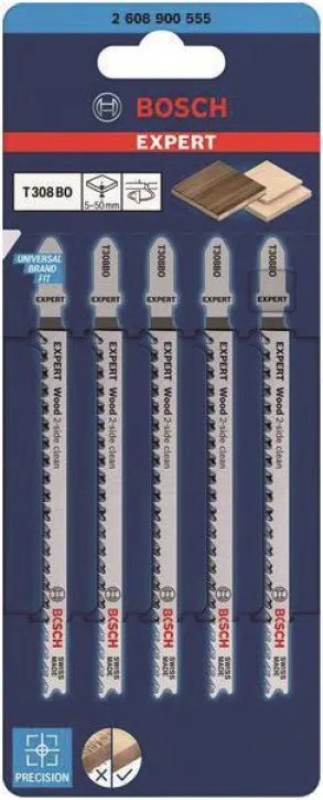 Bosch Stichsägeblätter T308BO 2608900555, EXPERT Wood 2-side clean, 5 Stück
