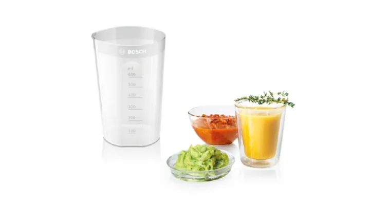 Der hochwertige Edelstahl-Mixfuß ist rostfrei, daher spülmaschinenfest und damit wie auch der beigefügte Meß-/Mixbecher einfach zu reinigen.