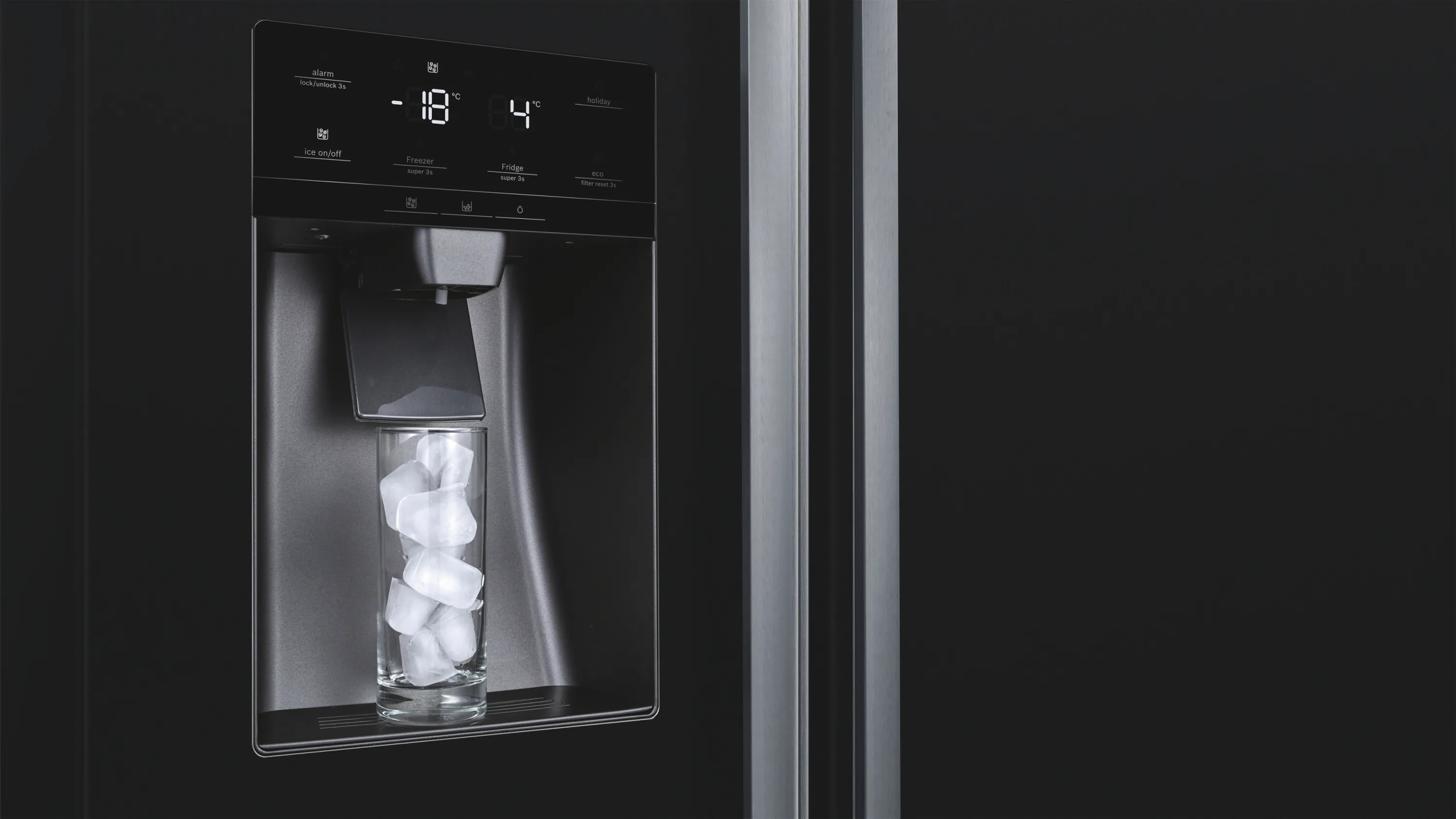 Serie 6 Amerikanischer Side by Side - Die NoFrost side-by-side Kühl-Gefrier-Kombination mit Indoor Elektronik: bietet Ihnen ein modernes Tür-Display u. erspart das Abtauen.