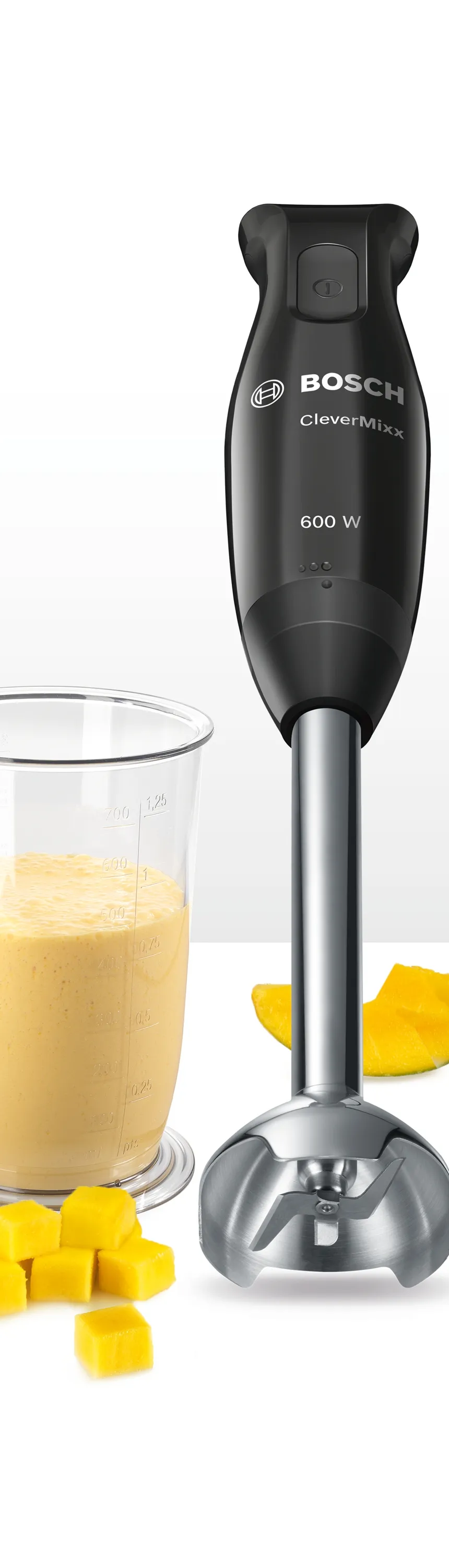 Der Bosch MSM2610B Stabmixer ist die optimale Wahl für alle, die Wert auf Zuverlässigkeit, hohe Leistung und einfache Reinigung legen. Mit nur einem Knopfdruck zaubern Sie im Handumdrehen leckere Rezepte für die ganze Familie. Gönnen Sie sich mehr Komfort und Inspiration beim Kochen – mit dem CleverMixx von Bosch!