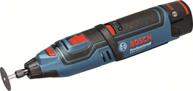 Akku-Rotationswerkzeug GRO 12V-35. Leistungsstark und vielseitig für professionelle Anwendungen. Leistungsstarker Motor mit hoher Drehzahl (bis zu 35.000 min-1) für schnellen Arbeitsfortschritt. Vielfältige professionelle Anwendungsmöglichkeiten wie Schneiden, Schleifen, Fräsen, Polieren und Bohren, besonders an schwer zugänglichen Stellen. Komfortables Arbeiten durch kompakte Bauform, ergonomisches Design und integrierte LED Beleuchtung. Bosch Electronic Cell Protection (ECP): Schützt den Akku vor Überlastung, Überhitzung und Tiefentladung. Integriertes LED-Licht zur Beleuchtung des Arbeitsbereichs auch an dunklen Stellen. Praktische Batterie-Ladezustandsanzeige mit 3 LEDs. Drehzahlvorwahl für perfektes Einstellen auf unterschiedliche Zubehöre und Arbeitsmaterialien. Aufspanndorn (2 610 927 731), Gehäuseaufsatz (1 619 P11 344), L-BOXX 102 (1 600 A00 1RP), Schlüssel (2 610 930 692), Schnellladegerät GAL 1230 CV (1 600 A00 R44), Spannzange (1 619 P11 363), Trennscheibe (2 615 110 426), Zubehör Box, 1/2 L-BOXX-Einlage für Akku und Ladegerät (1 600 A00 2WV), 1/2 L-BOXX-Einlage für Werkzeug (1 600 A00 2WY), 2 x Akku GBA 12V 2.0 Ah (1 600 Z00 02X).