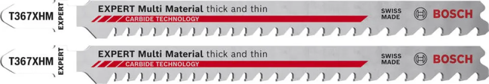 Entdecke das BOSCH Expert Carbide Stichsägeblatt T367XHM 'Multi Material' (2 Stück) – 2608901708: Dein zuverlässiger Partner für anspruchsvolle Trennarbeiten an verschiedensten Bau- und Werkstoffen. Dank modernster Bosch Carbide Technology liefert dieses Stichsägeblatt eine außergewöhnlich hohe Lebensdauer und schnelles, präzises Schneiden – selbst durch schwierigste Materialien wie Bauholz mit eingearbeiteten Metallen, Faserplatten oder verschraubte Holzwerkstoffe.