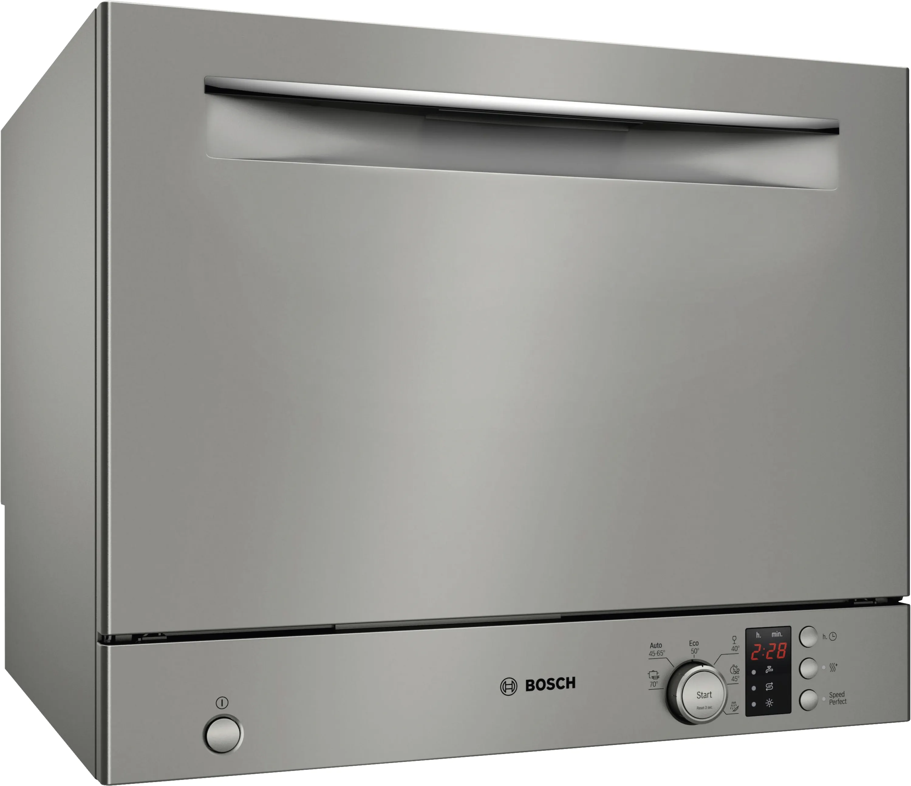 Der Bosch SKS2ITI00E Kompakt-Geschirrspüler ist die platzsparende Lösung für kleine Küchen, Apartments oder Büros. Mit einer Breite von nur 55,1 cm und einer Höhe von 45 cm passt er auch in beengte Räume und bietet dennoch Platz für bis zu 6 Maßgedecke. Die moderne Spültechnik sorgt für sauberes Geschirr bei geringem Energie- und Wasserverbrauch.