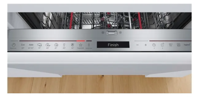 Das vollintegrierte Design des BOSCH SMV2HTX06E fügt sich harmonisch in jede moderne Küche ein. Das Bedienfeld bleibt unsichtbar, die Steuerung erfolgt bequem von oben. Mit der Startzeitvorwahl (3, 6 oder 9 Stunden) kannst du den Spülvorgang flexibel planen – ideal für Nachtstrom oder wenn du unterwegs bist.