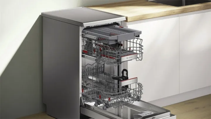 Mit dem Bosch SPS6EMI21E genießen Sie glänzendes Geschirr, sparen Zeit und schonen Ressourcen. Die smarte App-Steuerung, das flexible Korbsystem und die leisen Betriebsgeräusche machen ihn zur perfekten Wahl für moderne Haushalte mit wenig Platz.