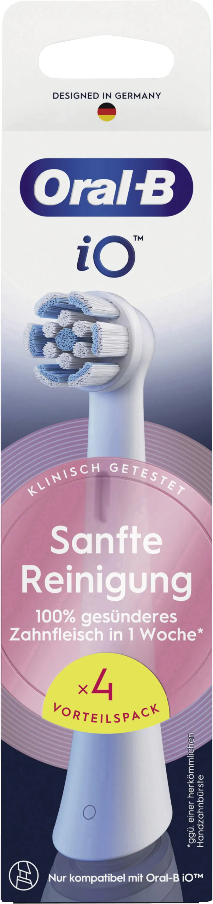 Oral-B Aufsteckbürsten iO Sanfte Reinigung 4er Pack 194877, Ersatzbürsten für empfindliches Zahnfleisch, weiß