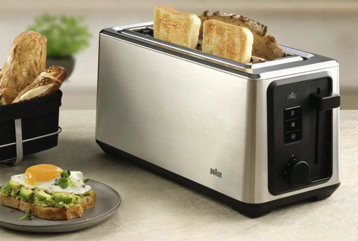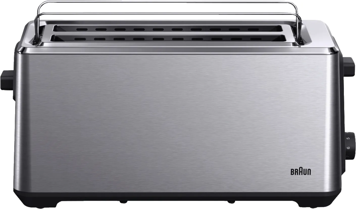 Zwei lange Schlitze toasten bis zu vier Scheiben oder große Brote zugleich. Das spart Zeit und bietet mehr Flexibilität beim Frühstück. Ideal für Familien.