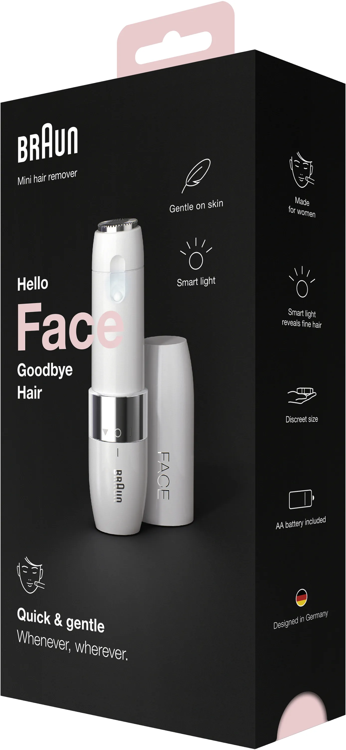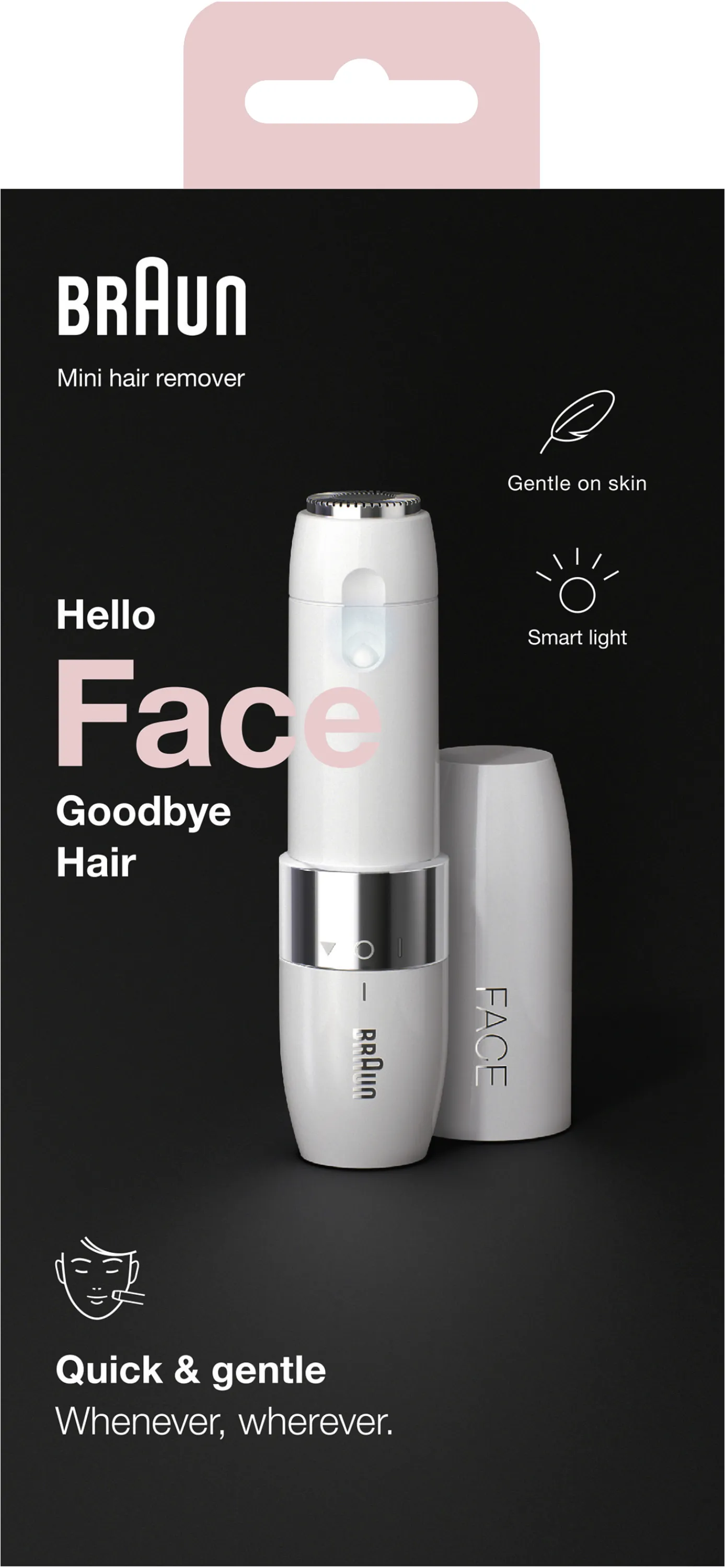 Entdecken Sie die sanfte und effektive Gesichtshaarentfernung mit dem BRAUN Face Mini Hair Remover FS1000. Der kompakte, beleuchtete Gesichtshaarschneider sorgt schnell für ein glattes, ebenmäßiges Hautbild – immer und überall, wann Sie möchten.