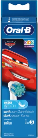 Die Oral-B Kids Cars 3er Aufsteckbürsten machen das tägliche Zähneputzen für Kinder ab 3 Jahren zum spaßigen Erlebnis. Das beliebte Cars-Design motiviert kleine Zahnputzhelden, während die extra-weichen Borsten die empfindlichen Milchzähne und das sensible Zahnfleisch besonders schonend reinigen.