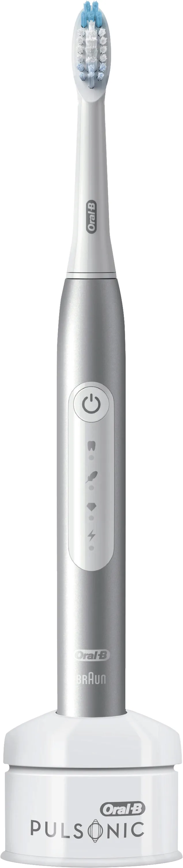 Erleben Sie innovative Zahnpflege auf höchstem Niveau – mit der Oral-B Pulsonic Slim Luxe 4000 Schallzahnbürste in elegantem Platin! Dank sanfter Schalltechnologie und bis zu 62.000 Bürstenkopfbewegungen pro Minute entfernen Sie deutlich mehr Plaque als mit einer herkömmlichen Handzahnbürste – für ein sichtbar saubereres, weißeres Lächeln und nachhaltig gesünderes Zahnfleisch.