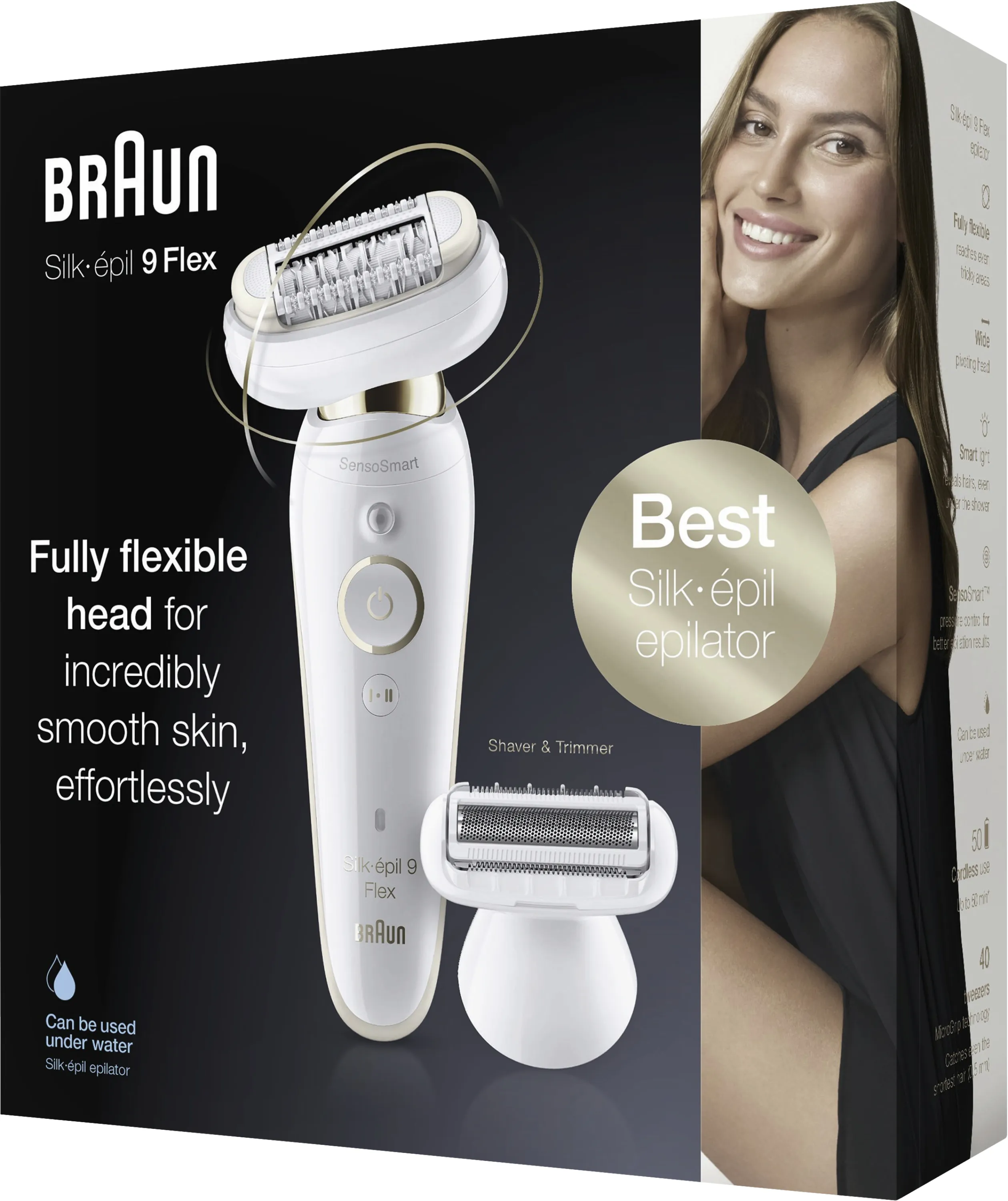 Entdecken Sie den Braun Silk-épil 9 Flex 9002 3D Epilierer – den weltweit ersten Epilierer mit komplett flexiblem Kopf. Dank innovativer 3D-Technologie passt sich der Epilierkopf optimal Ihren Körperkonturen an und sorgt für eine besonders gründliche, sanfte und komfortable Haarentfernung. Genießen Sie wochenlang seidig-glatte Haut, ganz ohne Stress und häufiges Nachrasieren.