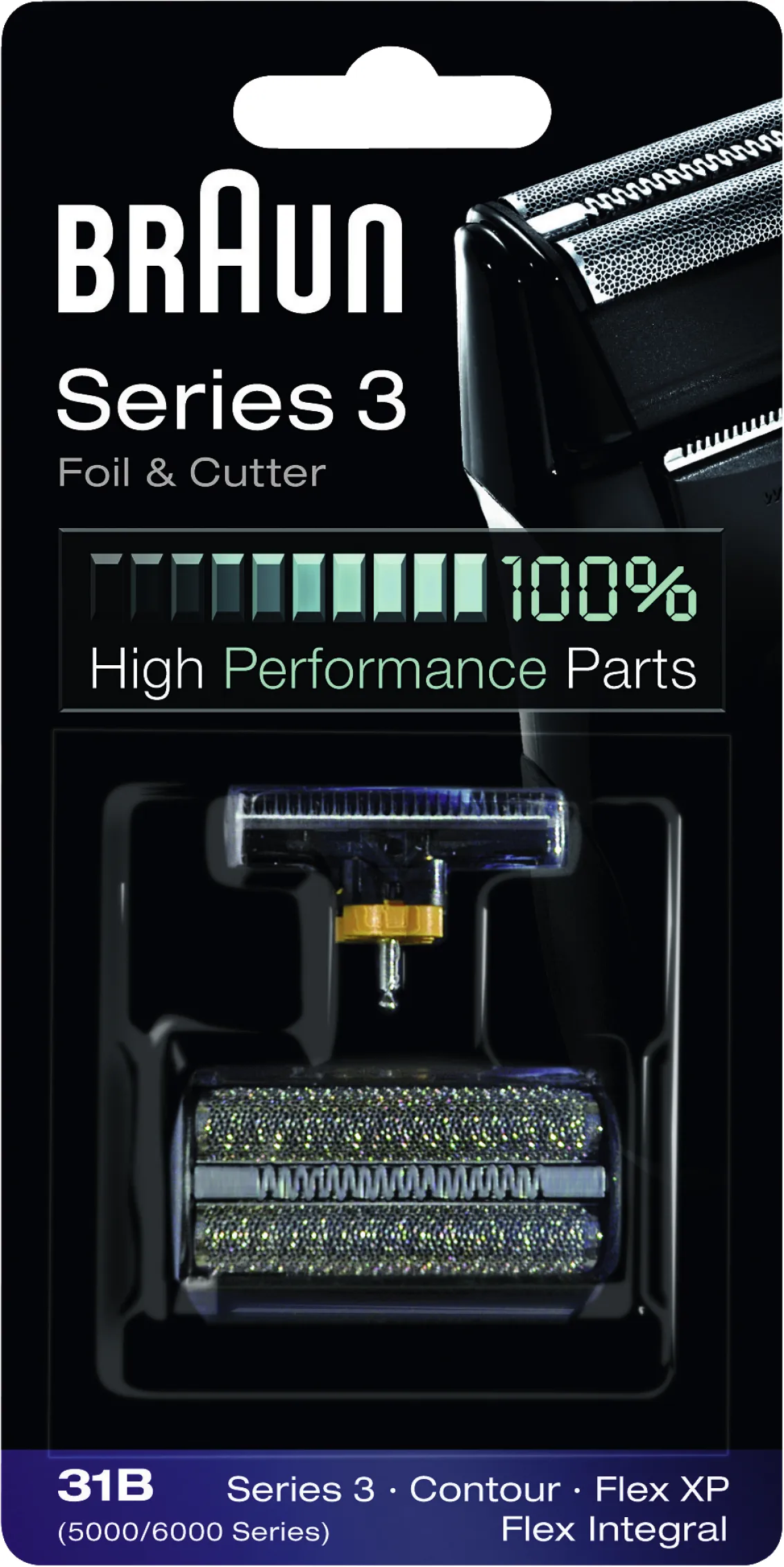Braun Scherkopf Kombipack 31B 4210201072799, Ersatzscherfolie & Klingenblock für Series 3, Contour, Flex XP, schwarz