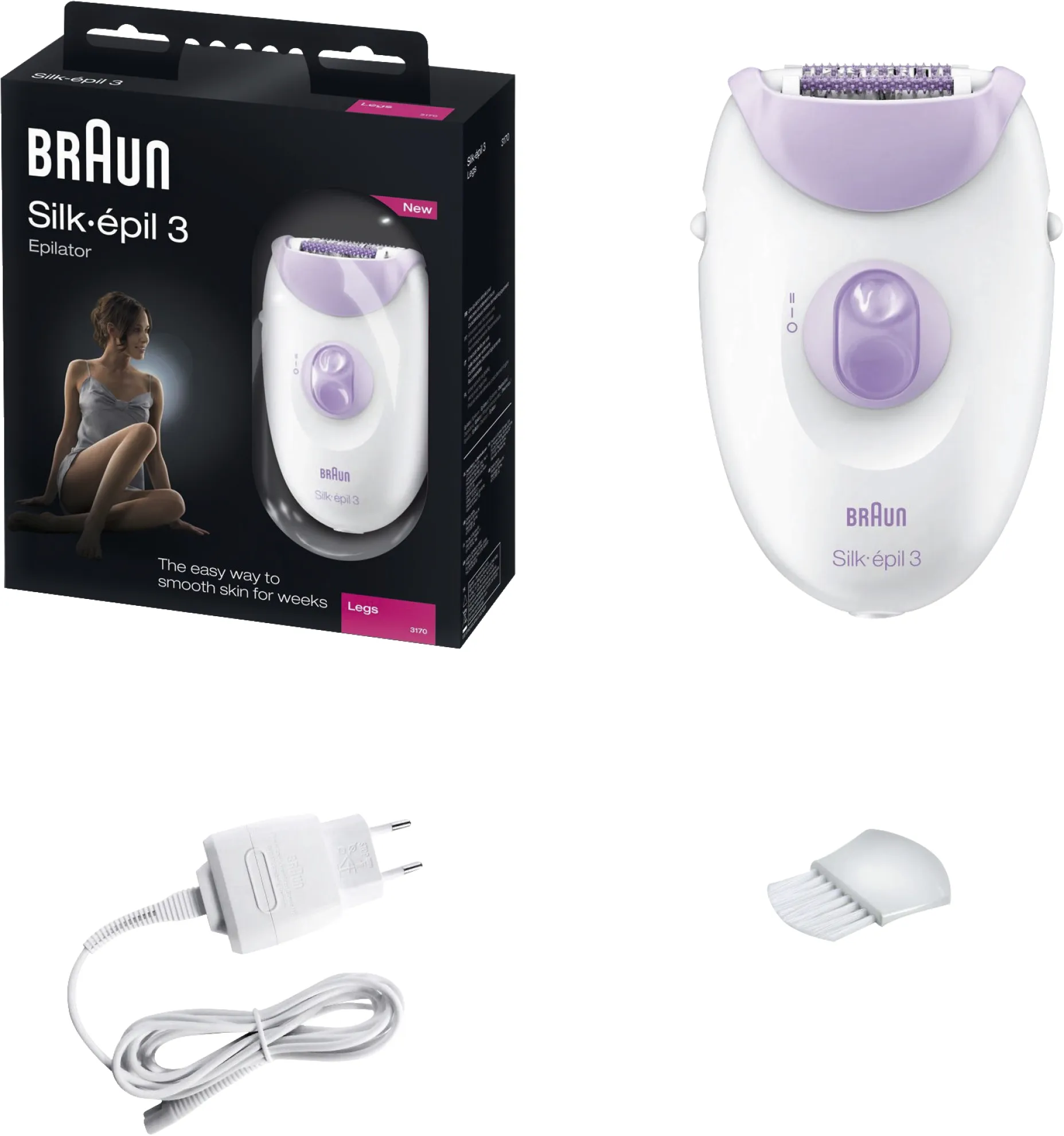 Braun Silk-epil 3-Epiliergerät 3170 104864 LG lila-weiß Legs