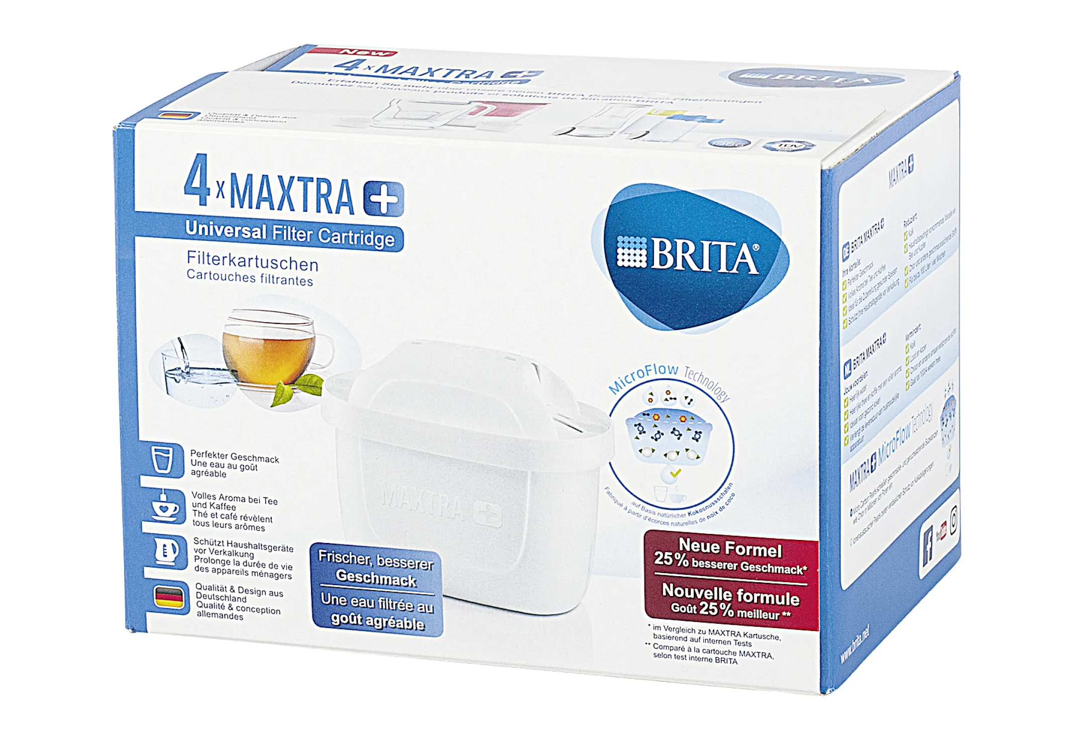 Kunststoff, 25% verbesserter Geschmack, noch mehr Leistung für noch mehr Geschmack, passt in alle BRITA Systeme (ausgenommen Classic Systeme), reduziert zuverlässig den Kalkgehalt des Wassers sowie geruchs- und geschmacksstörende Stoffe wie z.B. Chlor und hausinstallationsbedingt vorkommende Metalle wie Blei und Kupfer, für 100 l gefiltertes Wasser, Kartuschenwechsel alle 4 Wochen