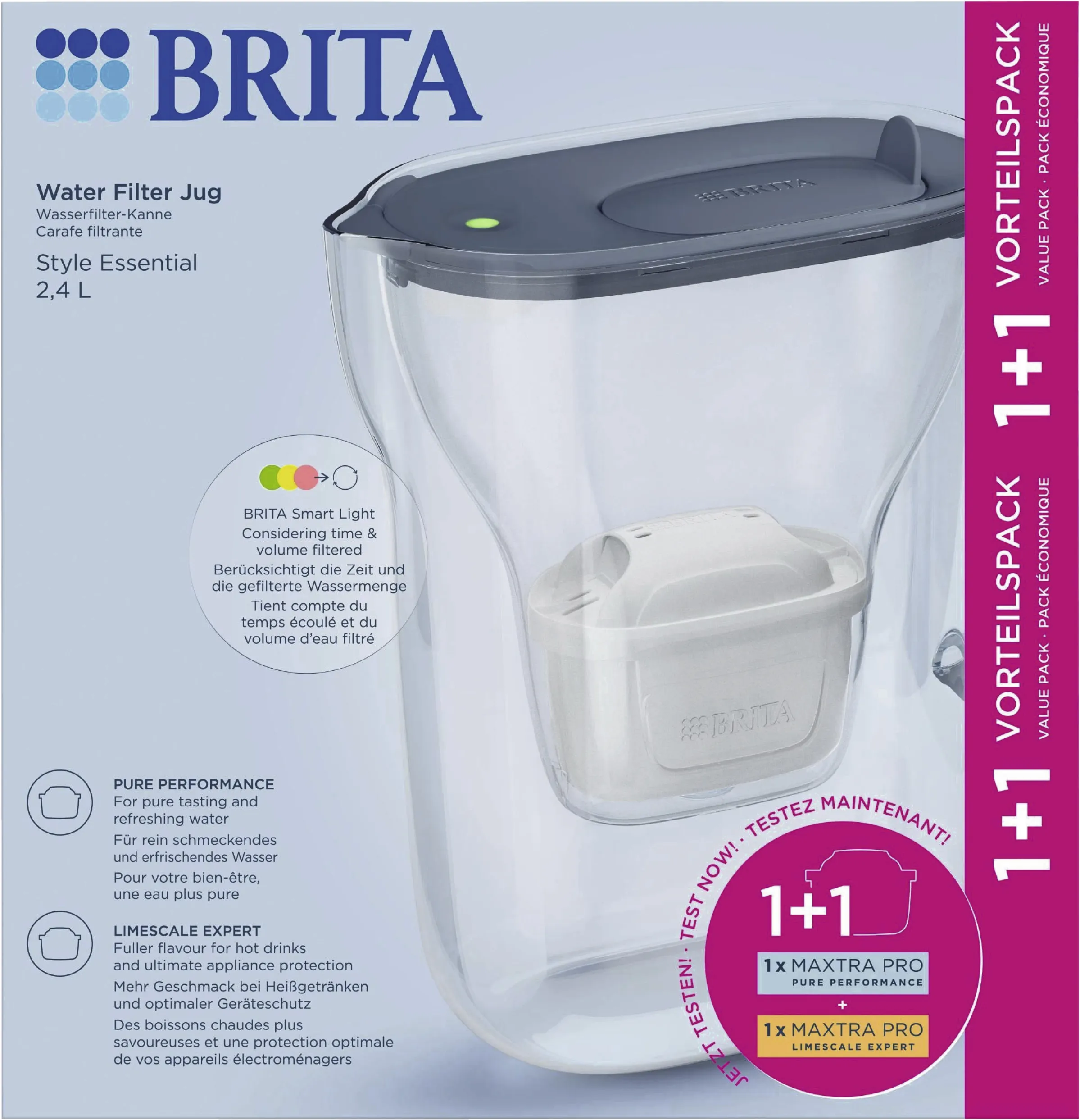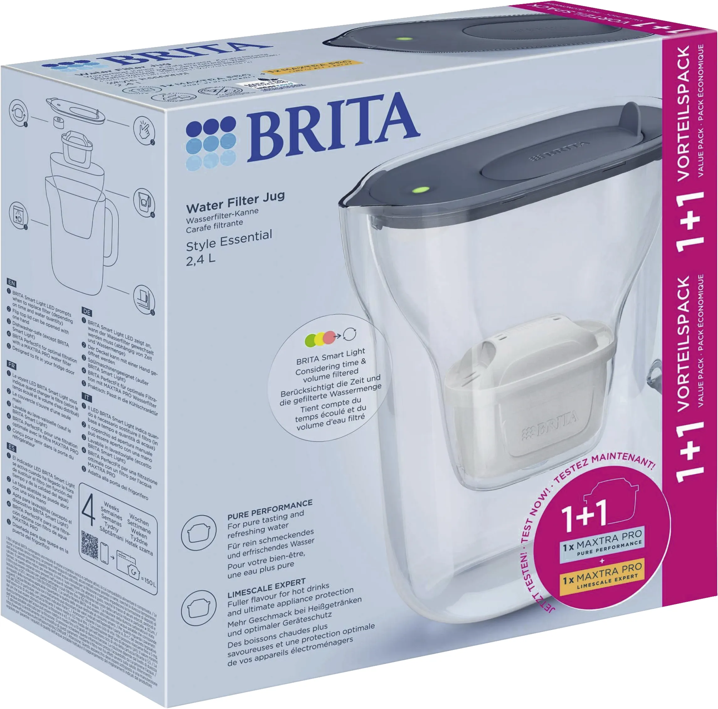 Brita Wasserfilter Style Essential, 2,4 l, 1x Maxtra Pro Pure + 1x Pro Extra