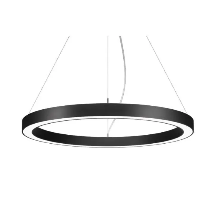 LED-Pendel-Ringleuchte, direkt/indirekt, dimmbar, strukturschwarz, rund. Pendelmontage, Deckenmontage Ausführung: ohne Fassung, Montageart: Pendelmontage, Montageort: Deckenmontage, Material: Aluminium / Stahl / Kunststoff, Schutzart raumseitig: nach DIN EN 60529: IP20, Schutzklasse: (EN 61140) I, Spannung: 230V AC 50Hz, Leistung: 100 W, Anzahl der Leuchtmittel / Fassungen: 1 Stück, Lichtstrom: 8.300 lm, Farbtemperatur: 3.000 K, Lichtfarbe: weiß, Mit Betriebsgerät: Ja, Art der Dimmung: DALI.