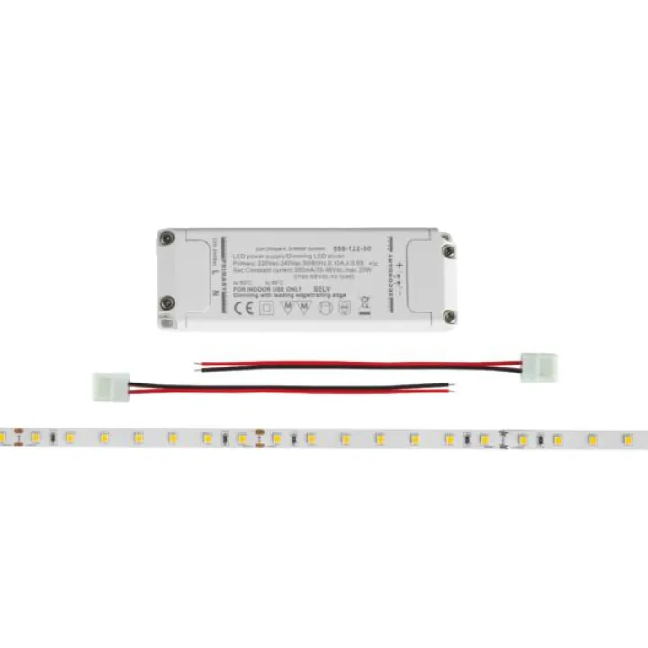 Das BRUMBERG 15291027 LED-Flexplatinen-Set ist die ideale Lösung für stilvolle und flexible LED-Beleuchtung in Wohnräumen, Küchen, Arbeitsbereichen oder Shops. Mit 4,8 Watt pro Meter und einer warmweißen Farbtemperatur von 2700K sorgt das 5 Meter lange LED-Band für angenehmes, behagliches Licht und überzeugt durch hohe Energieeffizienz.