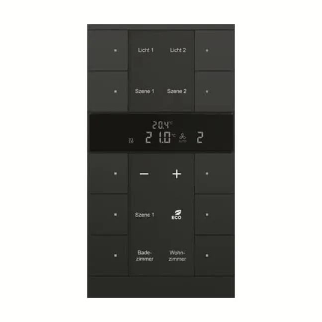 Steuern Sie Ihr Klima, Ihre Lüftung, Beleuchtung und Lichtszenen zentral und intuitiv – individuell je nach Tageszeit, Stimmung oder Anwesenheit. Dank Master-/Slave-Betrieb und Parallelbetrieb ist das System auch für anspruchsvolle Gebäudekonzepte geeignet. Ob Modernisierung oder Neubau, dieses KNX-Bedienelement ist die knappste Schaltzentrale für alle, die mehr Komfort und Effizienz erwarten.